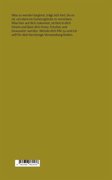 Was zu werden beginnt, trägt sich fort, bis es ist, um dann im Geistesglücke zu versinken. Was hier auf dich zukommt, strömt in dich hinein und lässt dich freier, frischer und bewusster werden. Wende dich Mir zu und Ich will für dich herzinnige Verwendung finden.