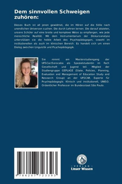 Dieses Buch ist all jenen gewidmet, die im Hören auf die Stille nach unendlichen Universen suchen. Die durch Lehren lernen. Die darauf abzielen, unsere Schüler auf eine breite und komplexe Weise zu empfangen, wie jede menschliche Realität. Mit dem Instrumentarium der Diskursanalyse unterstützen sie die heikle Arbeit des Psychopädagogen, sowohl im institutionellen als auch im klinischen Bereich. Es handelt sich um einen Dialog zwischen Linguistik und Psychopädagogik.