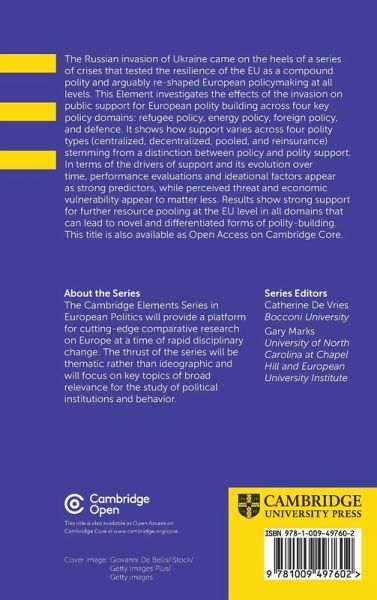 This Element investigates the effects of the Russian invasion of Ukraine on public support for European polity building across key policy domains. This title is also available as Open Access on Cambridge Core.