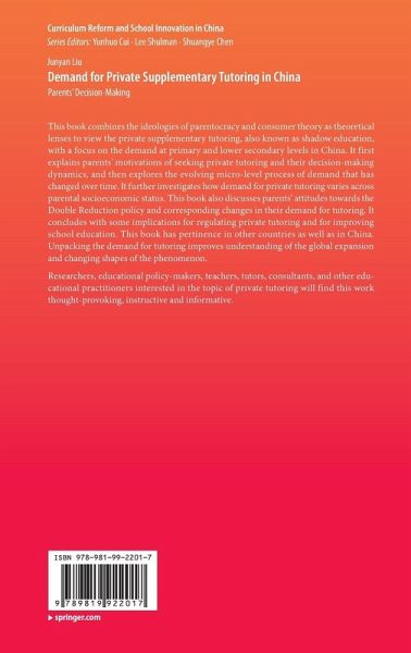 This book combines the ideologies of parentocracy and consumer theory as theoretical lenses to view the private supplementary tutoring, also known as shadow education, with a focus on the demand at primary and lower secondary levels in China. It first explains parents' motivations of seeking private tutoring and their decision-making dynamics, and then explores the evolving micro-level process of demand that has changed over time. It further investigates how demand for private tutoring varies across parental socioeconomic status. This book also discusses parents' attitudes towards the Double Reduction policy and corresponding changes in their demand for tutoring. It concludes with some implications for regulating private tutoring and for improving school education. This book has pertinence in other countries as well as in China. Unpacking the demand for tutoring improves understanding of the global expansion and changing shapes of the phenomenon.