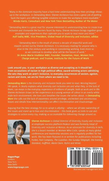 "Many in the dominant majority have a hard time understanding how their privilege shows up in the workplace. In Demanding More, Sheree Atcheson has done a great job of peeling back the layers and offering tangible solutions to make the workplace more equitable." Minda Harts, Consultant and New York Times Bestselling Author of The Memo