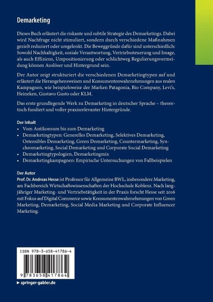 Dieses Buch erläutert die riskante und subtile Strategie des Demarketings. Dabei wird Nachfrage nicht stimuliert, sondern durch verschiedene Maßnahmen gezielt reduziert oder umgelenkt. Die Beweggründe dafür sind unterschiedlich: Sowohl Nachhaltigkeit, soziale Verantwortung, Vertriebssteuerung und Image, als auch Effizienz, Umpositionierung oder schlichtweg Regulierungsvermeidung können Auslöser und Hintergrund sein. Der Autor zeigt strukturiert die verschiedenen Demarketingtypen auf und erläutert die Herangehensweisen und Konsumentenwahrnehmungen aus realen Kampagnen, wie beispielsweise der Marken Patagonia, Bio Company, Levi's, Heineken, Gustavo Gusto oder KLM.Das erste grundlegende Werk zu Demarketing in deutscher Sprache - theoretisch fundiert und voller praxisrelevanter Hintergründe.