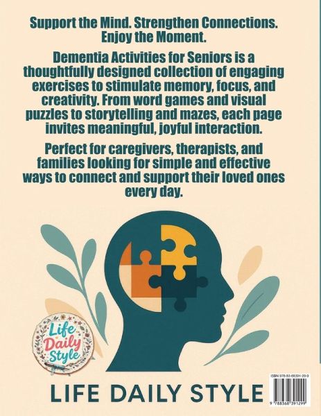 Dementia & Alzheimer's Activity Book for Seniors: Gentle Joy, Calm, and Connection Bring back moments of focus, calm, and daily joy with this thoughtfully designed activity book created especially for seniors living with dementia or Alzheimer's. Each page offers gentle engagement through coloring, puzzles, word searches, memory tasks, and matching games-all tailored to the unique needs of elderly adults. ¿ Why this book makes a real difference:Diverse activities - from simple puzzles and coloring to memory games that spark interaction. Large print & senior-friendly layout - clear, easy-to-read pages reduce frustration. Supports emotional well-being - helps ease stress while encouraging focus and accomplishment. Created for seniors - respectful, age-appropriate designs for both men and women. Meaningful gift - ideal for birthdays, Christmas, Mother's Day, or simply "just because." Who is it for?Seniors with dementia, Alzheimer's, anxiety, or low attention span. Families and caregivers looking for thoughtful, non-digital ways to connect. Anyone wanting to bring small moments of comfort, calm, and joy to a loved one. Because little things matter most. This book isn't just about activities-it's about restoring dignity, sparking smiles, and creating meaningful moments together. Get your copy today and discover how one page at a time can make all the difference.