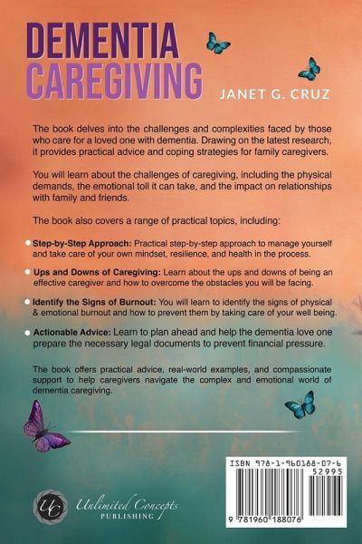 DEMENTIA CAREGIVING - A COMPASSIONATE GUIDE FOR CAREGIVERS Dementia is a thief that steals memories and moments, leaving in its wake a shell of the person your loved one used to be. As their caregiver, you find yourself on a rollercoaster of emotions, juggling the needs of your loved one with the demands of life. You want nothing more than for them to feel healthy, happy, and loved, but the weight of responsibility can be overwhelming. In those moments of exhaustion, you need someone who understands and offers guidance & empathy to help you navigate this journey. And, Janet G. Cruz's 'Dementia Caregiving' book about dementia is that someone! This self-care book provides practical coping strategies for untangling dementia to prevent caregiver burnout, increase awareness, and identify the invisible burden. With clear and concise guidance, caregivers can find hope, strength, and resilience as they navigate the challenges of helping someone with mental illness. UNDERSTANDING THE IMPACT OF DEMENTIA CAREGIVING Caring for a loved one with dementia can be emotionally taxing, affecting every aspect of the caregiver's life. In this mental health book, readers will learn about the emotional toll of caregiving, including feelings of guilt, grief, and loss. Drawing on the latest research, this caregiver book provides advice to help caregivers navigate the emotional landscape, eliminate suffering and burnout & maintain healthy relationships. FINDING STRENGTH & SUPPORT AS A CAREGIVER Dementia caregiving can be isolating, overwhelming, and emotionally draining. This dementia care guide offers practical advice and coping strategies to help caregivers every step of the way. With this finding the light in dementia book, caregivers can understand and care for themselves, build emotional resilience, find hope and support, and thrive in their caregiving role. BOOK DETAILS This self-help book offers practical guidance and support for caregivers on how to care for aging parents/loved ones with dementia. This dementia book covers a range of topics, including making the decision to become a caregiver, coping with dementia, managing everyday challenges, and planning for the future. Step-by-Step Approach: The self-help book for mental health takes a step-by-step approach, providing actionable advice on how to self-care for caregivers, and manage their own mindset, and health while dealing with aging parents/dearest ones with dementia. Resilience Building Strategies: This book about mental health with real-world examples and compassionate support, is a valuable resource for caregivers navigating the complex world of dementia caregiving. Written for: A self-help guide designed for caregivers of loved ones with dementia. This book on mental illness provides the essential knowledge, practical tools, and emotional support to ease the burden of caring for & loving someone who has dementia. ABOUT THE AUTHOR Janet G. Cruz, author of 'Dementia Caregiving,' is a creative writer and artist who combines her studies in Sociology, Psychology, and Fine Arts with her passion for helping others. Drawing from personal experience as a caregiver to multiple family members, including her husband, who passed away from cancer, she provides valuable insights on burnout & self-care, and practical advice to dementia caregivers in need of emotional and physiological support. Discover hope and resilience in the midst of dementia caregiving with Janet G. Cruz's compassionate guide. Get your copy today!