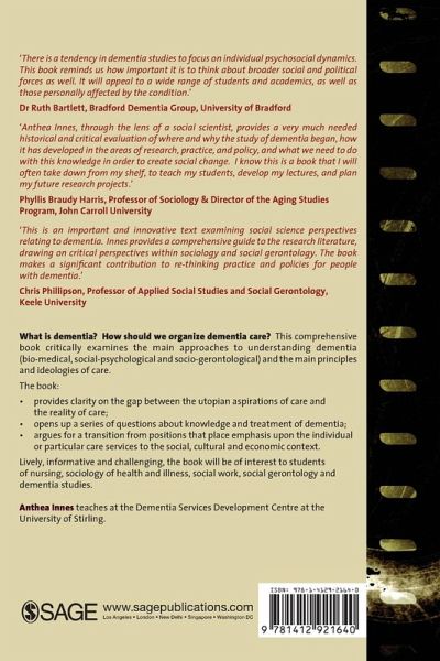 A provocative and stimulating work that will be used by academics and advanced students of dementia, sociology and social gerontology for some time...This synthesis of dementia studies from a social science perspective is a valuable academic resource. In particular, it highlights the need for future dementia studies to examine not only the micro level of the experiences of people with dementia but also the social systems and processes that continue to shape their lives