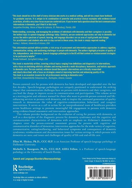 "Understanding, assessing, and managing the problems of individuals with dementia and their caregivers is possibly the hottest topic in speech-language pathology today. Similarly, person-centered approaches not only to dementia but across the entire spectrum of speech, hearing, and language disorders are an area of rapid growth and change. For practitioners and students who wish to stay current in these areas, this book is simply required reading." Audrey L. Holland, University of Arizona, USA