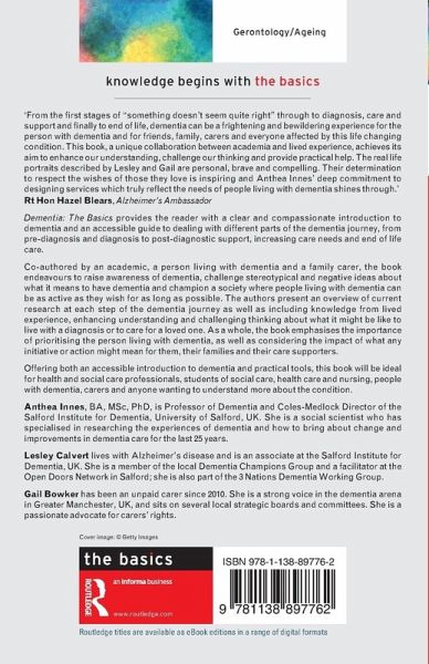 Dementia: The Basics provides the reader with a clear and compassionate introduction to dementia and an accessible guide to dealing with different parts of the dementia journey, from pre-diagnosis and diagnosis to post-diagnostic support, increasing care needs and end of life care.
