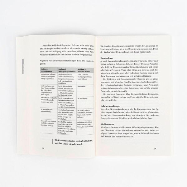 Was passiert bei Demenz mit dem Gehirn?Ab wann kann ein Demenzkranker nicht mehr allein leben?Wie überzeuge ich meinen Angehörigen vom Pflegeheim?Wie gehe ich mit Aggression um?Was kann ich tun, wenn mein Angehöriger seine Medikamente verweigert? Was tue ich, wenn mich mein Angehöriger beschuldigt, ihn bestohlen zu haben?Soll ich Demenzkranke auf ihre Fehler hinweisen? Wie reagiere ich, wenn mich mein Angehöriger nicht mehr erkennt?