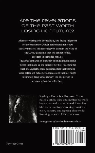 Are the revelations of the past worth losing her future? After discovering who she really is, and facing judgment for the murders of Officer Benitez and her fellow solitary inmates, Prudence is given a deal in the wake of the COVID pandemic that she cannot refuse. Freedom in exchange for a lie.Prudence embarks on a journey to find all the missing pieces that make up the fabric of her life. Reaching far back she unearths more dark atrocities that perhaps were better left hidden. Transgressions that just might ultimately drive Vincent away; the one person in existence that she holds dear.