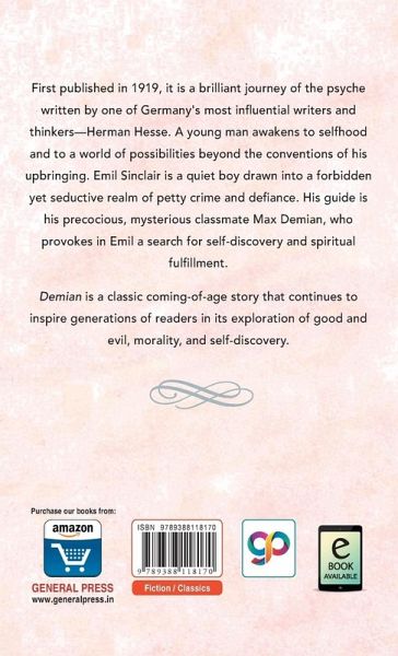 First published in 1919, it is a brilliant journey of the psyche written by one of Germany's most influential writers and thinkers-Herman Hesse. A young man awakens to selfhood and to a world of possibilities beyond the conventions of his upbringing. Emil Sinclair is a quiet boy drawn into a forbidden yet seductive realm of petty crime and defiance. His guide is his precocious, mysterious classmate Max Demian, who provokes in Emil a search for self-discovery and spiritual fulfillment. Demian is a classic coming-of-age story that continues to inspire generations of readers in its exploration of good and evil, morality, and self-discovery.