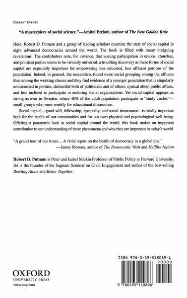 The recent, highly sucessful publication of Bowling Alone: The Collapse and Revival of American Community by Robert Putnam, has attracted new attention to the subject of civil society. While markets and democracies arise in formerly Communist states, the established liberal democracies of Western Europe, North America, and East Asia grow increasingly dissatisfied with the institutions of representative democracy. Inasmuch as a democracy draws its strength from the involvement of its citizens in public life, the decline of civic participation, Putnam asserts, reflects changes in society. Putnam and his contributors investigate the mechanisms of social transformation by employing the concept of social capital, which loosely describes the extent and variety of an individual's social relations. Democracies in Flux delineates the properties of social capital by analysing its behaviour in several economically advanced democracies. While all participate in a global economy, they differ as societies in terms of historical experience, economic organisation, and democratic structure. A central concern of the project is to understand how societies change, and what implications these changes have for democracy.