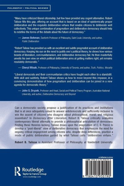 This book critically evaluates liberalism, the dominant attempt in the tradition of political philosophy to provide a philosophical foundation for democracy, and argues for a conception of deliberative democracy to meet this need.