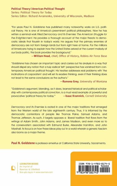 America, it is often argued, emerged from the Enlightenment. It follows that the prevailing elements of politics in the United States are echoes of struggles among what is here referred to as the moderate Enlightenment, the conservative Enlightenment, and the radical Enlightenment. These lead to conflicting political doctrines which variously address the fundamental questions of who should rule, and why, and how. The outcome is a confusing mélange of a tri-partite civil war among those who claim the Enlightenment as their own. This is accompanied by a long history of resistance, to the Enlightenment itself, a phenomenon which leads to deeper concerns. Sometimes referred to as the Counter-Enlightenment, this has been largely expressed by the Romantic contentions of an authoritarian nationalism. Indeed, its most dramatic manifestations have been realized in fascism and Nazism. In this manner, they constitute a step back into the historical mist, comprising a major attack on both reason and empiricism as the foundation of a scientific approach. Out of this combination of limitation and possibility emanate the essential power configurations of the epoch, yielding policies that are often perceived to be "democratic," either as threat or achievement. Accordingly, the book explores the actual substance of the democratic argument. On this basis, it contends that a progressive position necessitates a search for the material foundation of a more egalitarian pluralism as the only rational surrogate for majorities within a nation of enormous size, population, and the complexities of concentration that are beyond the reach of democracy in any literal sense. This work is rooted in one of the major traditions that emerged from the Western world of the late eighteenth century. Thus it is informed by the doctrinal contentions of people like Thomas Paine, Samuel Adams, and Thomas Jefferson. As such, it largely opposes a tradition that flows from the writings of Adam Smith, John Adams, and James Madison, and even more so to that associated with Edmund Burke, Alexander Hamilton, and John Marshall. Its focus is on how these ideas play out in a world wherein a generic fascism is also a major theme always looming