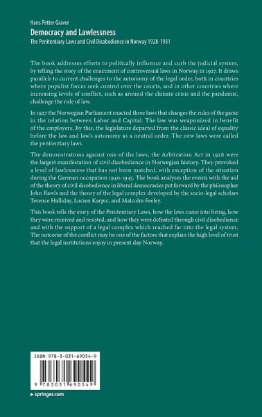 The demonstrations against one of the laws, the Arbitration Act in 1928 were the largest manifestation of civil disobedience in Norwegian history. They provoked a level of lawlessness that has not been matched, with exception of the situation during the German occupation 1940-1945. The book analyses the events with the aid of the theory of civil disobedience in liberal democracies put forward by the philosopher John Rawls and the theory of the legal complex developed by the socio-legal scholars Terence Halliday, Lucien Karpic, and Malcolm Feeley.