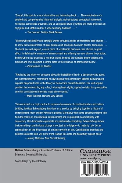 1. Introduction: explaining legal change and entrenchment 2. Innovation and democracy: legal change in ancient Athens 3. Law reform in seventeenth-century England 4. Fallibility and foundations in the American constitution 5. Protecting democracy and dignity in post-war Germany 6. Conclusion: defending democracy against entrenchment.