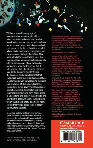 We live in a revolutionary age of communicative abundance in which many media innovations - from satellite broadcasting to smart glasses and electronic books - spawn great fascination mixed with excitement. In the field of politics, hopeful talk of digital democracy, cybercitizens and e-government has been flourishing. This book admits the many thrilling ways that communicative abundance is fundamentally altering the contours of our lives and of our politics, often for the better. But it asks whether too little attention has been paid to the troubling counter-trends, the decadent media developments that encourage public silence and concentrations of unlimited power, so weakening the spirit and substance of democracy. Exploring examples of clever government surveillance, market censorship, spin tactics and back-channel public relations, John Keane seeks to understand and explain these trends, and how best to deal with them. Tackling some tough but big and fateful questions, Keane argues that 'media decadence' is deeply harmful for public life.
