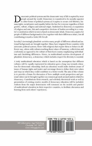 A volume in Research in Multicultural Education and International Perspectives Series Editors Farideh Salili and Rumjahn Hoosain, The University of Hong Kong Democratic political systems and the democratic way of life is aspired by most people around the world. Democracy is considered to be morally superior to other forms of political systems as it aspires to secure civil liberties, human rights, social justice and equality before the law for everyone regardless of their gender, culture, religion and national origin. Enshrined in democracy is separation of religion and state, fair and competitive elections of leaders according to a country's constitution which in turn is based on democratic ideals. Democracy aspires for people of different backgrounds to live together with their differences intact, but all contributing towards a better life for all. In today's increasingly pluralistic societies many people of different cultural and national backgrounds are brought together. Many have migrated from countries with autocratic political systems. Some with religions that require them to behave in different way, others with cultures teaching them values of harmony, collectivism and conformity as opposed to the culture of their host country emphasizing individualism and cherishing differences. Hence, in multicultural societies development of pluralistic democracy, a democracy which includes respect for diversity is essential. A truly multicultural education which is based on the assumption that different cultures will be equally represented in education goes a long way towards education for democratic citizenship. Such an education would make students aware of issues of human rights and justice and encourage them to define their own values and ways in which they could contribute to a better world. The aim of this volume is to provide a forum for discussion of how multiple social perspectives and personal values can be brought together on common grounds around matters related to democracy. Contributions from research, and scholarly theoretical work as well as presentation of existing creative models of democracy education will be included. Authors from the major democracies will comment on the models and practice of multicultural education in their respective countries, to facilitate discussion and learning from each others' experiences.