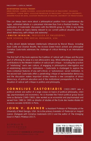 This volume offers an accessible intellectual dialogue on the very nature of critical thought and on its social and political translations. Castoriadis is pushed to address challenges raised by decolonial thought, by critiques of ethnocentrism, and broadly by the international context of radical critical thought.