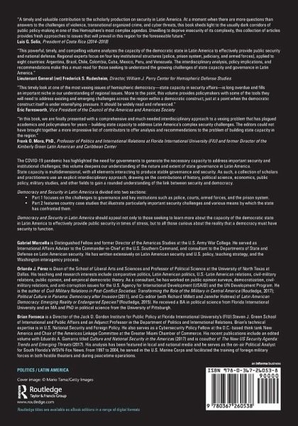 Gabriel Marcella is Distinguished Fellow and former Director of the Americas Studies at the U.S. Army War College. He served as International Affairs Advisor to the Commander-in-Chief at the U.S. Southern Command, and consultant to the Departments of State and Defense on Latin American security. He has written extensively on Latin American security and U.S. policy, teaching strategy, and the Washington interagency process. Orlando J. Pérez is Dean of the School of Liberal Arts and Sciences and Professor of Political Science at the University of North Texas at Dallas. His teaching and research interests include comparative politics, Latin American politics, U.S.-Latin American relations, civil-military relations, public opinion, and empirical democratic theory. As a consultant, he has worked on public opinion surveys, democratization, civil-military relations, and anti-corruption issues for the U.S. Agency for International Development (USAID) and the UN Development Program. He is the author of Civil-Military Relations in Post-Conflict Societies: Transforming the Role of the Military in Central America (Routledge, 2017); Political Culture in Panama: Democracy after Invasion (2011), and Co-editor (with Richard Millett and Jennifer Holmes) of Latin American Democracy: Emerging Reality or Endangered Species? (Routledge, 2015). He received a BA in political science from Florida International University and an MA and PhD in political science from the University of Pittsburgh. Brian Fonseca is a Director of the Jack D. Gordon Institute for Public Policy at Florida International University's (FIU) Steven J. Green School of International and Public Affairs and an Adjunct Professor in the Department of Politics and International Relations. Brian's technical expertise is in U.S. National Security and Foreign Policy. He also serves as a Cybersecurity Policy Fellow at the D.C.-based think tank New America and Chair of the Americas Linkage Committee at the Greater Miami Chamber of Commerce. His recent publications include an edited volume with Eduardo A. Gamarra titled Culture and National Security in the Americas (2017) and is coauthor of The New US Security Agenda: Trends and Emerging Threats (2017). His analysis has been featured in local and national media and he serves as the on-air Political Analyst for South Florida's WSVN-Fox News. From 1997 to 2004, he served in the U.S. Marine Corps and facilitated the training of foreign military forces in both hostile theaters and during peacetime operations.