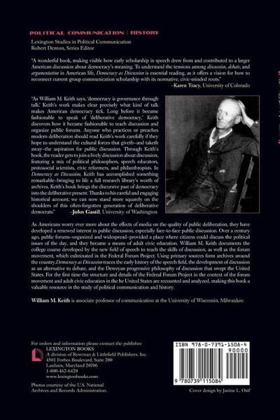 A wonderful book, making visible how early scholarship in Speech drew from and contributed to a larger American discussion about democracy's meaning. To understand the tensions among discussion, debate, and argumentation in American life, Democracy as Discussion is essential reading, as it offers a vision for how to reconnect current group communication scholarship with its normative, civic-minded roots. -- Karen Tracy, University of Colorado As Keith says, "Democracy is governance through talk." Keith's work makes clear precisely what kind of talk makes American democracy tick. Long before it became fashionable to speak of "deliberative democracy," Keith discovers how it became fashionable to teach discussion and organize public forums. Anyone who practices or preaches modern deliberation should read Keith's work carefully if they hope to understand the cultural forces that giveth-and taketh away-the aspiration for public discussion. Through Keith's book, the reader gets to join a lively discussion about discussion, featuring a mix of political philosophers, speech educators, proto-social scientists, civic reformers, and philanthropists. In Democracy as Discussion, Keith has accomplished something remarkable-bringing to life a full research library's worth of archives. Keith's book brings the discursive past of democracy into the deliberative present. Thanks to his careful and engaging historical account, we can now stand more squarely on the shoulders of this often forgotten generation of deliberative democrats. -- John Gastil, University of Washington