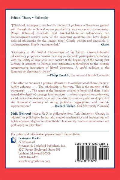 This book, along with its companion volume, Democracy as the Political Empowerment of the People, relates the democratic potential of the latest electronic technologies to the idea of direct-participatory democracy. Having clarified the original meaning of the idea of democracy, this volume proceeds to develop a new theory of democracy, 'Direct-Deliberative e-Democracy.'