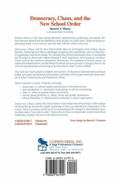 The author of this innovative book develops the thesis that educational reform in its current state is incomplete and ill-suited to democratic nations. Maxcy argues that 'decentralization' philosophies could seriously damage schools and children. He advocates a comprehensive 'new school order' to suit the changing features of postmodern culture. Key themes in this text include: poststructuralist versus structuralist assumptions; and order versus chaos in popular reform movements. Democracy, Chaos and the New School Order should become a landmark in postmodern approaches to education.