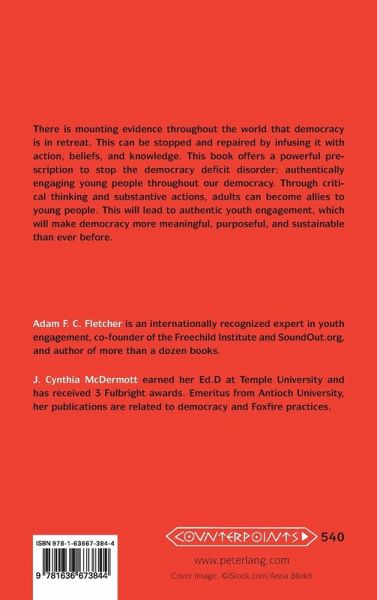 There is mounting evidence throughout the world that democracy is in retreat. This can be stopped and repaired by infusing it with action, beliefs, and knowledge. This book offers a powerful prescription to stop the democracy deficit disorder: authentically engaging young people throughout our democracy. Through critical thinking and substantive actions, adults can become allies to young people. This will lead to authentic youth engagement, which will make democracy more meaningful, purposeful, and sustainable than ever before.
