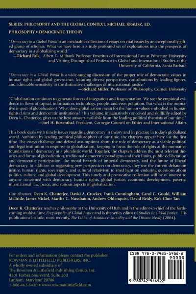 Chapter 1 Introduction Part 2 Democracy and Globalization Chapter 3 Development Ethics, Democracy, and Globalization Chapter 4 Negotiating the Global and the Local: Situating Transnational Democracy and Human Rights Part 5 Autonomy, Diversity, and Universal Human Rights Chapter 6 Relativism, Self-Determination, and Human Rights Chapter 7 Constitutions and Capabilities Part 8 Nationalism and Global Democracy Chapter 9 The Varieties of Nationalism Chapter 10 Global Democracy: International, Not Cosmopolitan Part 11 Global Public and the New World Order Chapter 12 Rawls' Law of Peoples and the New World Order Chapter 13 The Global Public and Its Problems