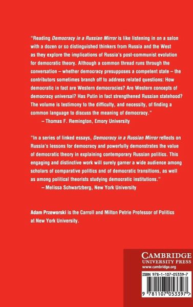 Introduction Part I. Russia: 1. Peculiarities of Russian politics Andranik Migranyan 2. Imitating democracy, imitating authoritarianism Stephen Holmes 3. Russian perspectives on democracy, political emancipation, and integrity Mikhail Ilyin 4. Color revolutions and Russia Valery Solovei Part II. Democracy in a Russian Mirror: 5. Judging democracy as form of government for given territories: utopia or apologetics? John Dunn 6. Democracy: ancient and modern, good and bad Pasquale Pasquino 7. The role of elections in democracy Boris Makarenko 8. Elections and the challenge of more democracy José María Maravall 9. Democracy between elections Ian Shapiro 10. General settings, regional/national factors and the concept of non-western democracy Alexei D. Voskressenski 11. 'Non-western democracy' in the West Adam Przeworski Part III. Paths of Political Change: 12. Instituting political change John Ferejohn 13. Political institution and political order(s) Adam Przeworski 14. How do transitions to democracy get stuck and where? Boris Makarenko and Andrei Melville Afterword: open issues and disagreements.