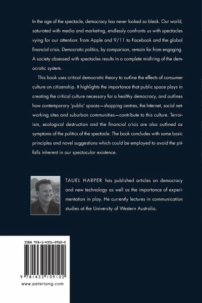 This book uses critical democratic theory to outline the effects of consumer culture on citizenship. It highlights the importance that public space plays in creating the critical culture necessary for a healthy democracy, and outlines how contemporary 'public' spaces - shopping centres, the Internet, social networking sites and suburban communities - contribute to this culture. Terrorism, ecological destruction and the financial crisis are also outlined as symptoms of the politics of the spectacle. The book concludes with some basic principles and novel suggestions which could be employed to avoid the pitfalls inherent in our spectacular existence.