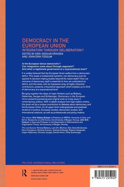 The key thinkers represented in this volume stress that in order to understand integration beyond the nation state, we need new explanatory categories associated with deliberation because a supranational entity as the EU posesses far weaker and less well-developed means of coercion - bargaining resources - than do states. The most appropriate term to denote this is the notion of 'deliberative supranationalism'. This pioneering work, headed by major writers such as Habermas, Schlesinger and Bellamy, brings a new perspective to this key issue in contemporary politics and political theory.