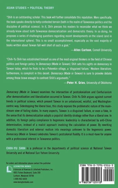 While political scientists generally see Taiwan as a success state because of its economic modernization and political democratization, this book reinterprets Taiwan's success from the Confucian and postcolonial perspectives. Democracy (Made in Taiwan) uncovers the hegemonic construction of the myth of the "success state" and challenges political scientists to abandon both the liberal-centrism and state-centrism prevailing in the literature of democratization.
