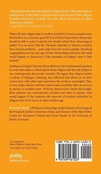 Leading sociologist Hartmut Rosa addresses this fundamental question in a way that makes us think afresh about religion and the role it plays in our contemporary democratic societies. He argues that religion fosters a culture of dialogue, listening and reflection that allows us to form connections with others and experience the world as meaningful. This, in turn, helps citizens cultivate a democratic sensibility that can serve as an anchor in unstable times. With his characteristic clarity and insight, Rosa analyses our contemporary societies and dares to ponder what would happen if the centuries-old reservoir of wisdom embedded in religion were to be lost in an ultra-modern age.