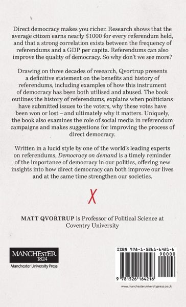 Democracy on demand is a most comprehensive analysis of the good, the bad, and the ugly aspects of referendums and the challenges to modern democracy. It shows how democracy is vulnerable, and how it can be saved from demagogues.