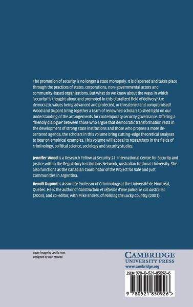 The promotion of security is no longer a state monopoly. It is dispersed and takes place through the practices of states, corporations, non-governmental actors and community-based organizations. But what do we know about the ways in which 'security' is thought about and promoted in this pluralized field of delivery? Are democratic values being advanced and protected, or threatened and compromised? Wood and Dupont bring together a team of renowned scholars to shed light on our understanding of the arrangements for contemporary security governance. Offering a 'friendly dialogue' between those who argue that democratic transformation rests in the development of strong state institutions and those who propose a more de-centered agenda, the scholars in this volume bring cutting-edge theoretical analyses to bear on empirical examples. This volume will appeal to researchers in the fields of criminology, political science, sociology and security studies.