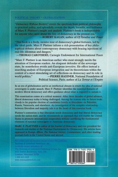 Democracy Without Borders? assesses the worldwide prospects of liberal democracy. In an era of globalization and in an intellectual climate in which the idea of national sovereignty is under assault, Plattner identifies the essential features of modern liberal democracy and offers guidance about what is required to sustain it. An investigation of the complex and tension-filled relationship between liberalism and majority rule is at the heart of this important book.