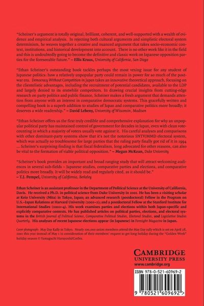 1. The importance of party competition and a model of party competition failure; 2. Opposition failure in Japan: background and explanations; 3. Clientelism and its determinants; 4. The impact of clientelism and centralized government financial structure: comparative analysis; 5. Local opposition failure in Japan; 6. National level opposition failure: the impact of subnational level weakness; 7. Political economy changes and their impact on party systems: comparative analysis; 8. Parallel party systems: political economy changes and the limits to anti-clientelist appeals in Japan; 9. The problem of organization and coherence in top-down party formation; 10. Conclusion: democracy without competition.