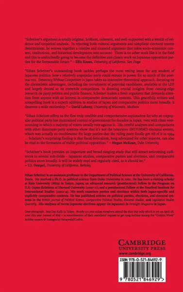 1. The importance of party competition and a model of party competition failure 2. Opposition failure in Japan: background and explanations 3. Clientelism and its determinants 4. The impact of clientelism and centralized government financial structure: comparative analysis 5. Local opposition failure in Japan 6. National level opposition failure: the impact of subnational level weakness 7. Political economy changes and their impact on party systems: comparative analysis 8. Parallel party systems: political economy changes and the limits to anti-clientelist appeals in Japan 9. The problem of organization and coherence in top-down party formation 10. Conclusion: democracy without competition.