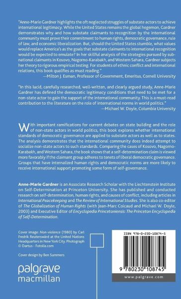 "Anne-Marie Gardner highlights the oft neglected struggles of sub-state actors to achieve international legitimacy. While the United States remains the global hegamon, Gardner demonstrates why and how sub-sate claimants to recognition by the international community must prove their commitment to human rights, democratic governance, rule of law, and economic liberalization. But should the United States stumble, what values would replace America's as the goals that sub-state claimants to international recognition would be expected to emulate? In her skillful analyzes of the strategies pursued by sub-national claimants in Kosovo, Nagorno-Karabach, and Western Sahara, Gardner subjects her theory to rigorous empirical testing. For students of ethnic conflict and international relations, this book qualifies as must reading." - Milton J. Esman, Professor of Government, Emeritus, Cornell University