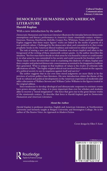 Democratic Humanism and American Literature illustrates the interplay between democratic assumptions and literary performance in the America's classic nineteenth-century writers--Emerson, Thoreau, Hawthorne, Melville, Cooper, Poe, Whitman, Twain, and James