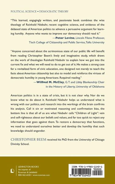 Chapter 1: Moderating our Pretensions: Niebuhr on Being Human Chapter 2: Between Sentimentality and Pessimism: Niebuhr on Democracy Chapter 3: Neuroscientists for Niebuhr Chapter 4: Rattlers and Eagles/Democrats and Republicans Chapter 5: Partisan Infotainment: A New Business Model for the New Media Chapter 6: Partisan Infotainment and Democracy: Not All Bad, Not Half Good Chapter 7: Weapons and Instruments: Using Government to Fix Government Chapter 8: Religion: "a constant fount of humility" Chapter 9: "Guardians of Democracy": Democratic Humility through Civic Education Conclusion: Democratic Humility