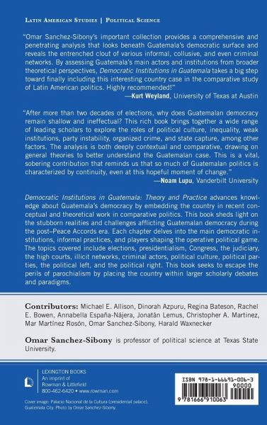 This book advances knowledge about Guatemala's democracy by embedding the country in recent conceptual and theoretical work in comparative politics and seeks to shed light upon the stubborn realities and challenges afflicting Guatemalan democracy today.