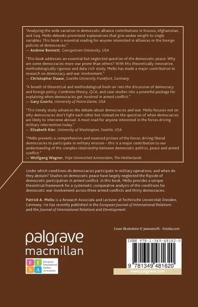 'This timely study advances the debate about democracies and war. Mello focuses not on why democracies don't fight each other but instead on the question of when democracies are likely to intervene abroad. He provides new and important insights into the role of public opinion, identifies those institutional factors most likely to constrain executive action, and considers how the larger organizational environment influences decisions about the use of force. A must read for anyone interested in the forces driving military intervention today.' - Elizabeth Kier, University of Washington, USA