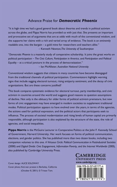 Conventional wisdom suggests that citizens in many countries have become disengaged from the traditional channels of political participation. Commentators highlight warning signs including sagging electoral turnout, rising anti-party sentiment, and the decay of civic organizations. But are these concerns justified? This book, first published in 2002, compares systematic evidence for electoral turnout, party membership, and civic activism in countries around the world and suggests good reasons to question assumptions of decline. Not only is the obituary for older forms of political activism premature, but new forms of civic engagement may have emerged in modern societies to supplement traditional modes. The process of societal modernization and rising levels of human capital are primarily responsible, although participation is also explained by the structure of the state, the role of agencies, and social inequalities.