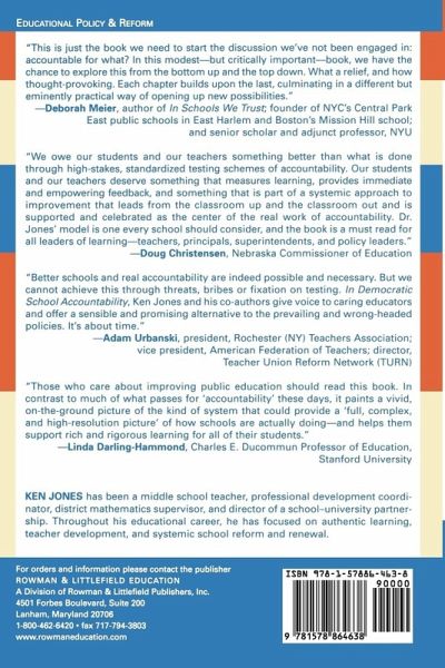Better schools and real accountability are indeed possible and necessary. But we cannot achieve this through threats, bribes or fixation on testing. In Democratic School Accountability, Ken Jones and his co-authors give voice to caring educators and offer a sensible and promising alternative to the prevailing and wrong-headed policies. It's about time. -- Adam Urbanski, president, Rochester (NY) Teachers Association; vice-president, American Federation of Teachers; director, Teacher Union Reform, President of the Rochester (NY) Teachers Association, Vice President of the American Federation of Teachers, and Founding Director of the Teacher Union Reform Network We owe our students and our teachers something better than what is done through high-stakes, standardized testing schemes of accountability. Our students and our teachers deserve something that measures learning, provides immediate and empowering feedback, and something that is part of a systemic approach to improvement that leads from the classroom up and the classroom out and is supported and celebrated as the center of the real work of accountability. Dr. Jones' model is one every school should consider and the book is a must read for all leaders of learning-teachers, principals, superintendents and policy leaders. -- Doug Christensen, Nebraska Commissioner of Education, emeritus commissioner of education (Nebraska), professor of leadership in education, graduate division, Doane College This is just the book we need to start the discussion we've not been engaged in: accountable for what? In this modest-but critically important-book we have the chance to explore this from the bottom up and the top down. What a relief, and how thought-provoking. Each chapter builds upon the last, culminating in a different but eminently practical way of opening up new possibilities. -- Deborah Meier, author of "In Schools We Trust"; founder of NYC's Central Park East public schools in East Harlem and Boston's Mission Hill school; current senior scholar at NYU's Steinhardt School of Education; and board member of Coalition for Essential Schools Jones and co-authors describe a new model for school accountability that provides a more nuanced alternative to the present system of using high-stakes testing. ... Particular emphasis is placed on the importance of schools being held accountable to their primary stakeholders: students, parents, and the local community. Reference and Research Book News Those who care about improving public education should read this book. In contrast to much of what passes for 'accountability' these days, it paints a vivid, on-the-ground picture of the kind of system that could provide a 'full, complex, and high-resolution picture' of how schools are actually doing-and help them support rich and rigorous learning for all of their students. -- Linda Darling-Hammond, Charles E. Ducommun Professor of Education, Stanford University