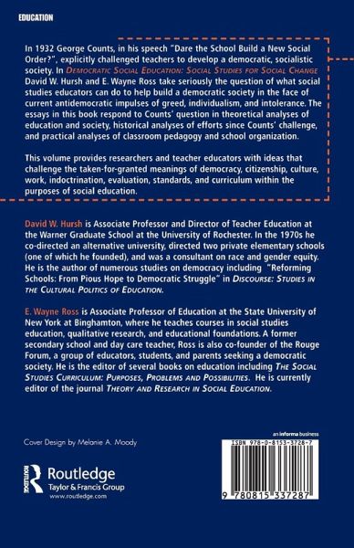 In 1932 George Counts, in his speech "Dare the School Build a New Social Order?" explicitly challenged teachers to develop a democratic, socialistic society. In Democratic Social Education: Social Studies for Social Change Drs. Hursh and Ross take seriously the question of what social studies educators can do to help build a democratic society in the face of current antidemocratic impulses of greed, individualism and intolerance. The essays in this book respond to Counts' question in theoretical analyses of education and society, historical analyses of efforts since Counts' challenge, and practical analyses of classroom pedagogy and school organization. This volume provides researchers and teacher educators with ideas and descriptions of practice that challenge the taken-for-granted meanings of democracy, citizenship, culture, work, indoctrination, evaluation, standards and curriculum within the purposes of social education.