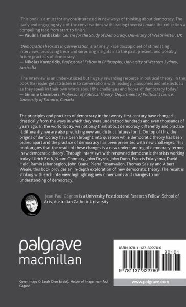 'This book is a must for anyone interested in new ways of thinking about democracy. The lively and engaging style of the conversations with leading theorists made the collection a compelling read from start to finish.' Paulina Tambakaki, Centre for the Study of Democracy, University of Westminster, UK