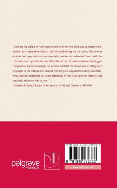 'Avoiding the pitfalls of Arab exceptionalism on the one hand and democracy promotion as a mere technique of political engineering on the other this volume enables both specialist and non specialist readers to understand how particular constraints and opportunities condition the success of political reform. Drawing on comparative historical analysis the authors illustrate the importance of fitting such strategies to the institutional context which they are supposed to change. Put differently, political strategists act more effectively if they stop ignoring features that inevitably structure their action.'