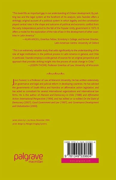 "This book fills an important gap in our understanding of Chilean development. By putting law and the legal system at the forefront of his analysis, Julio Faundez offers a strikingly original account of a political system in which legality and the constitution played central roles in the shape and outcome of political and economic conflict from the early Independence period to the fall of the Popular Unity government in 1973. It offers a model for the exploration of the role of law in the development of other countries in Latin America." - Alan Angell, Emeritus Fellow of St Antony's College, and former Director, Latin American Centre, University of Oxford"This is an extremely valuable study that adds significantly to the understanding of the role of legal institutions in the political process in Latin American in general, and Chile in particular. Faundez employs a wide gamut of sources for an original perspective and approach that provides striking insight into the process ofsocial change in Chile." - Joseph Thome, Professor Emeritus of Law, University of Wisconsin