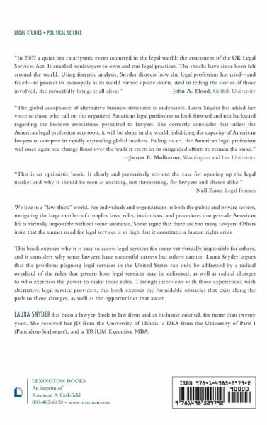 This book responds to the common objections to alternative business structures, describes the opportunities that such structures offer, exposes how lawyer self-regulation operates to obstruct the modernization of legal services, and includes interviews with persons who have experience with alternative legal service providers in other countries.